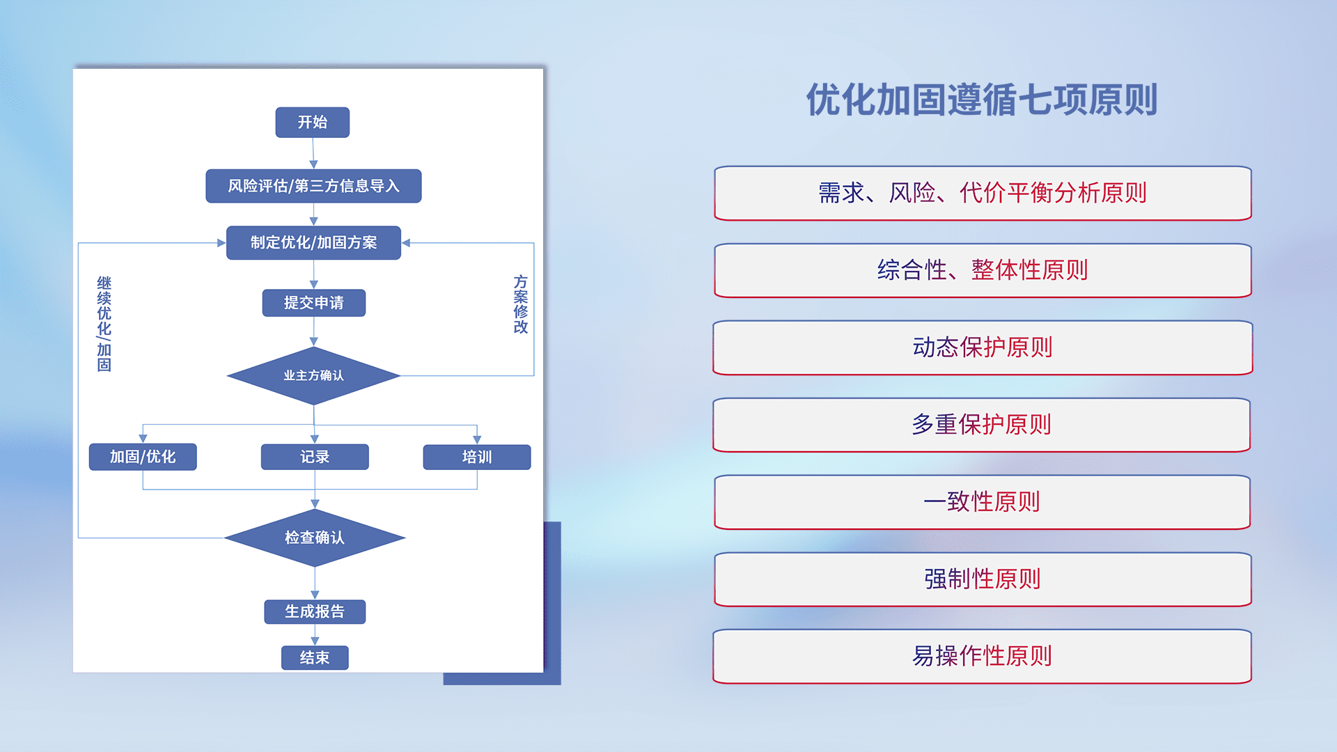 最大程度利用现有资产,,,,对评估发现的问题进行封堵与整改,,,防止漏洞被利用,,,,提升整体网络安全性,,,为客户带来高标准的优化加固服务。。。