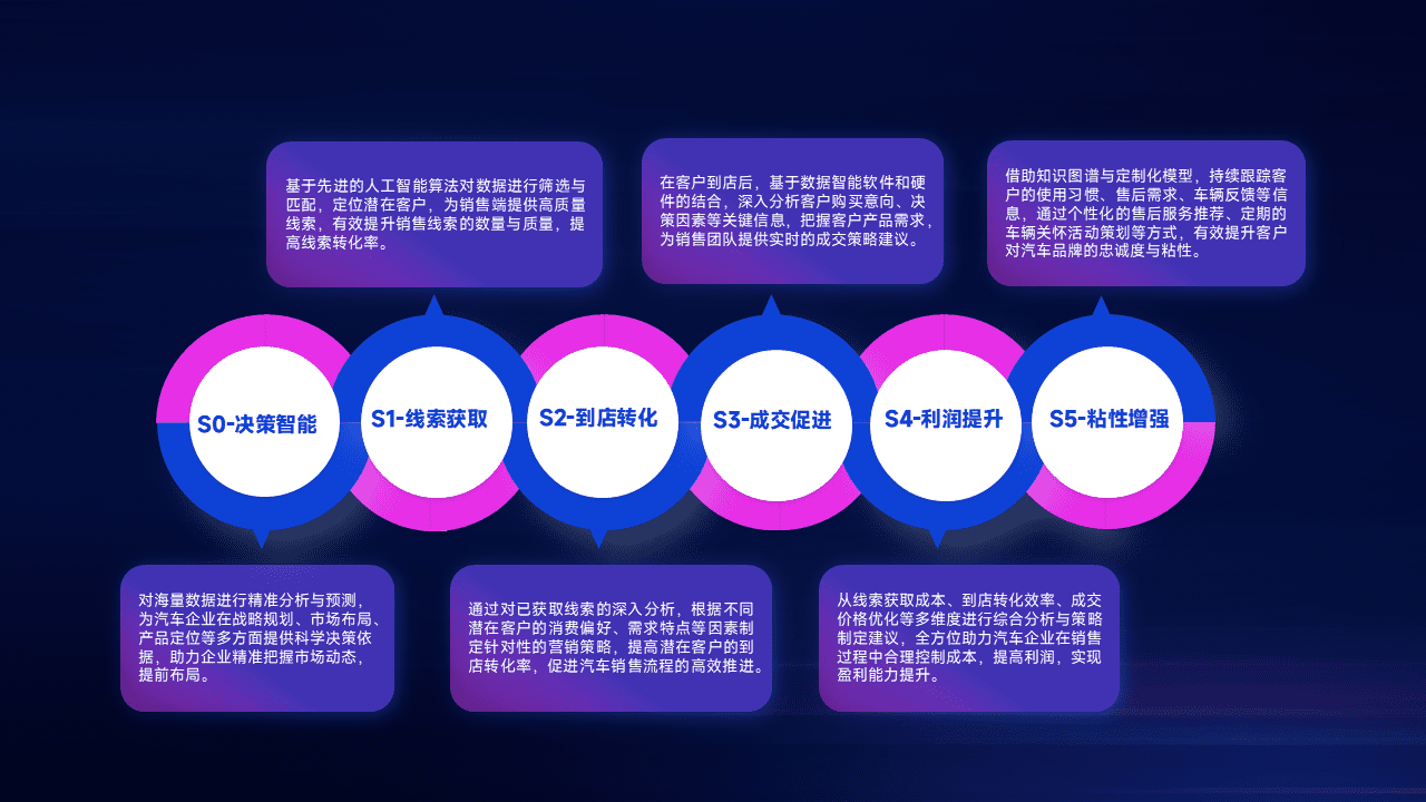 通过拓宽潜在客户来源、、优化线索分配并提高到店转化率,,,,以增强销售效率。。。同时,,,利用线索数据不断优化分析模型,,,有效提升转化率,,,扩大营销影响力。。。。